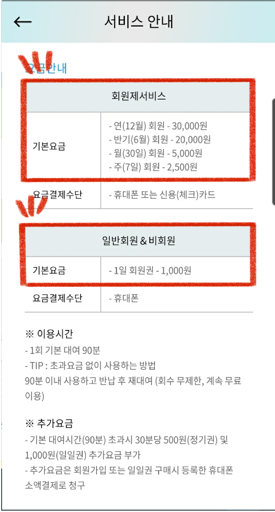결제 방식은 두 가지로 카드 결제와 휴대폰 결제가 있습니다. 저는 휴대폰 결제로 이용권을 구매했어요.