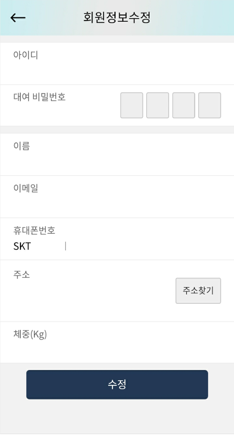 이용권은 일일권, 한 달 권, 반년권, 그리고 일 년 권이 있습니다. 일일권을 제외한 다른 모든 이용권은 모두 회원 가입 후 사용이 가능합니다. 회원 가입은 아주 간단합니다. 이름, 생년월일, 키와 몸무게 등 기본 정보를 입력하면 된답니다.