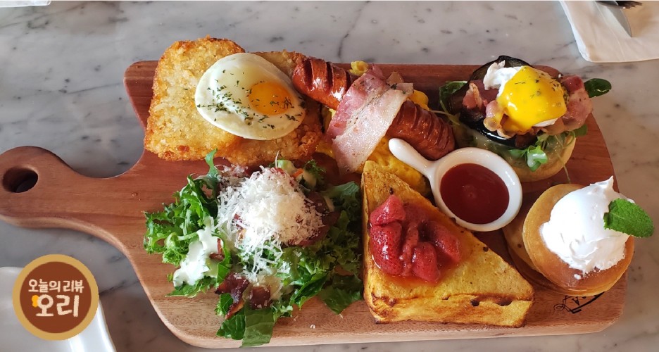 브런치의 구성이 아주 다양하더라고요. 하지만 딱 아는 그 맛이었어요. 뭔가 특별할 것 없는 맛이었달까요? 맛이 없다기보다는 평범한 맛이었어요. 구성은 다양하나 그냥 무난하고 그저 그런 브런치였습니다.