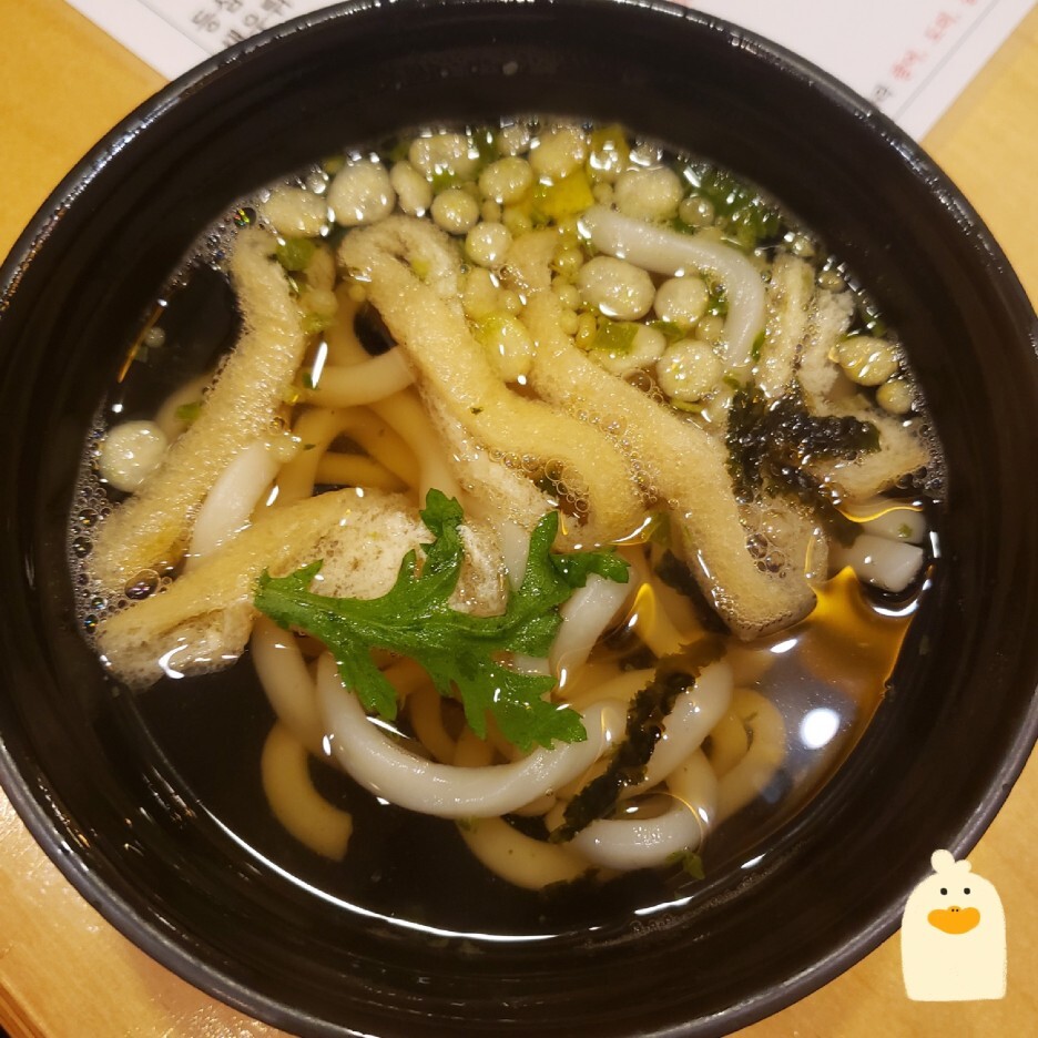 이어서 나온 미니 우동이에요. 이 우동은 따뜻해서 좋았으나 간이 너무 밍밍했어요. 국과 면이 따로 노는 건 시판 제품 우동이라 그럴 수 있지만 간이 너무 약해 우동 면의 밀가루 냄새가 더 강조되어 그다지 맛있지 않았습니다.