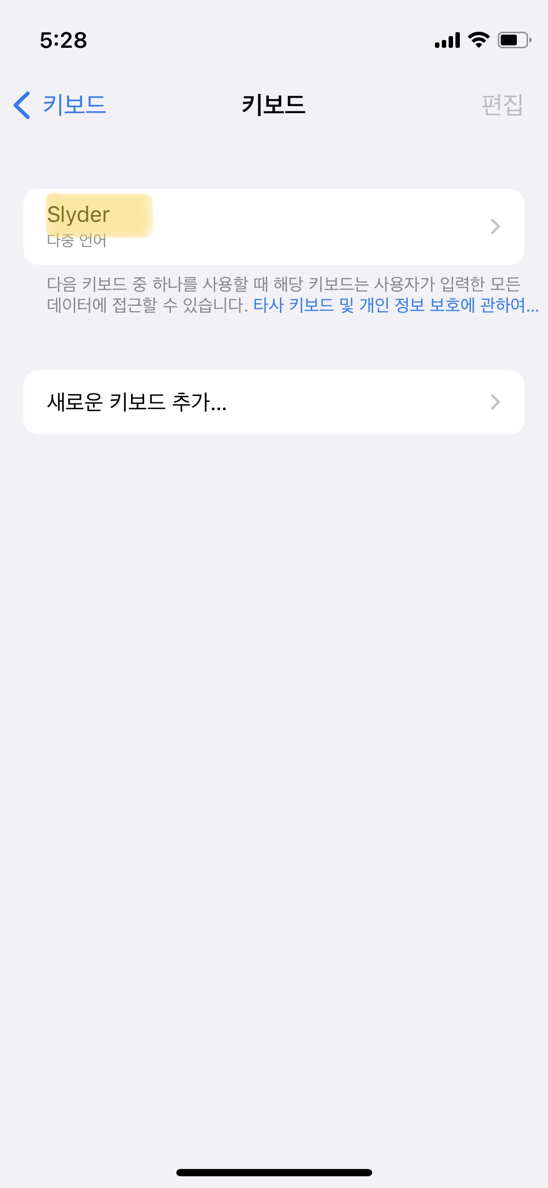1. 아이폰 설정 -> 일반 -> 키보드 -> 키보드 -> Slyder로 차례대로 들어가 줍니다. (사진 슬라이드를 넘기면서 확인해 주세요!)