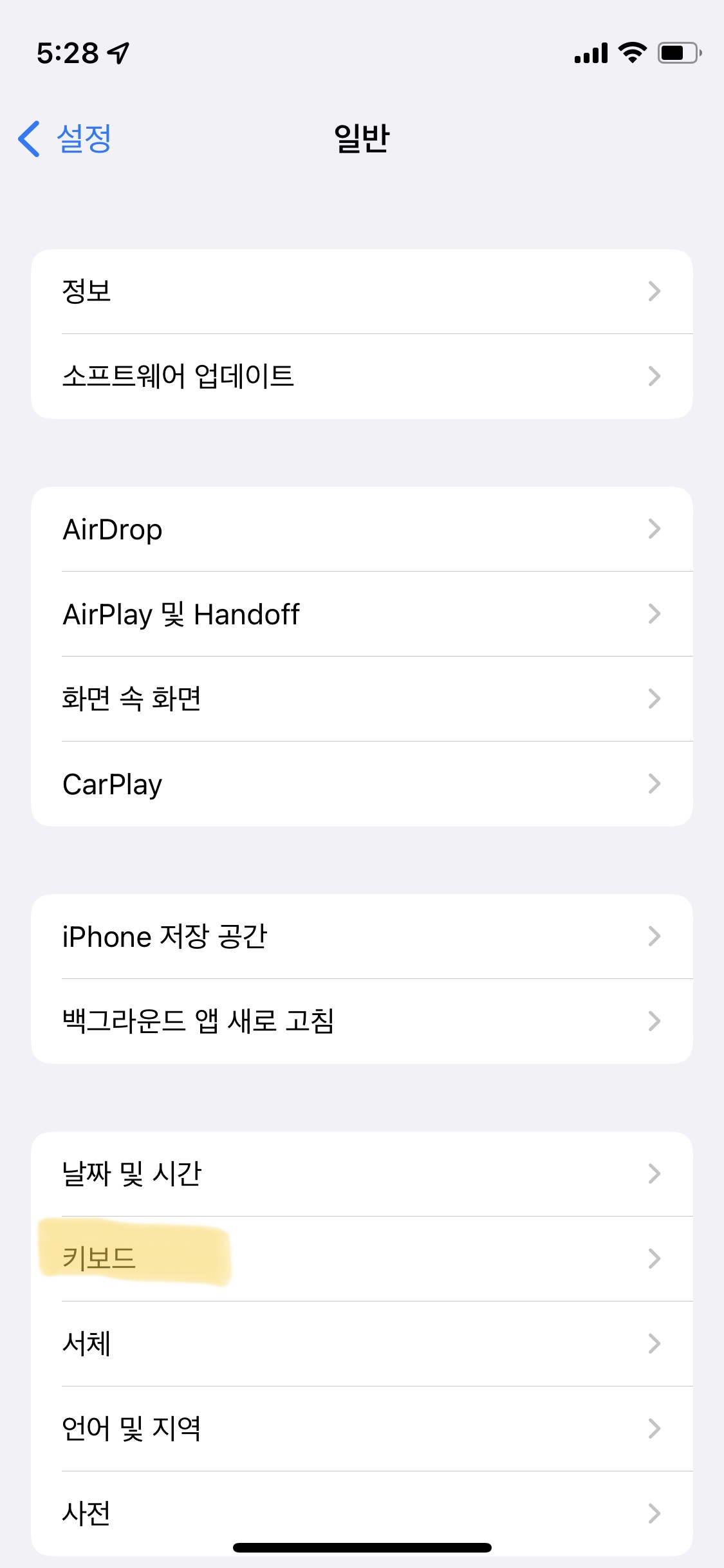 1. 아이폰 설정 -> 일반 -> 키보드 -> 키보드 -> Slyder로 차례대로 들어가 줍니다. (사진 슬라이드를 넘기면서 확인해 주세요!)