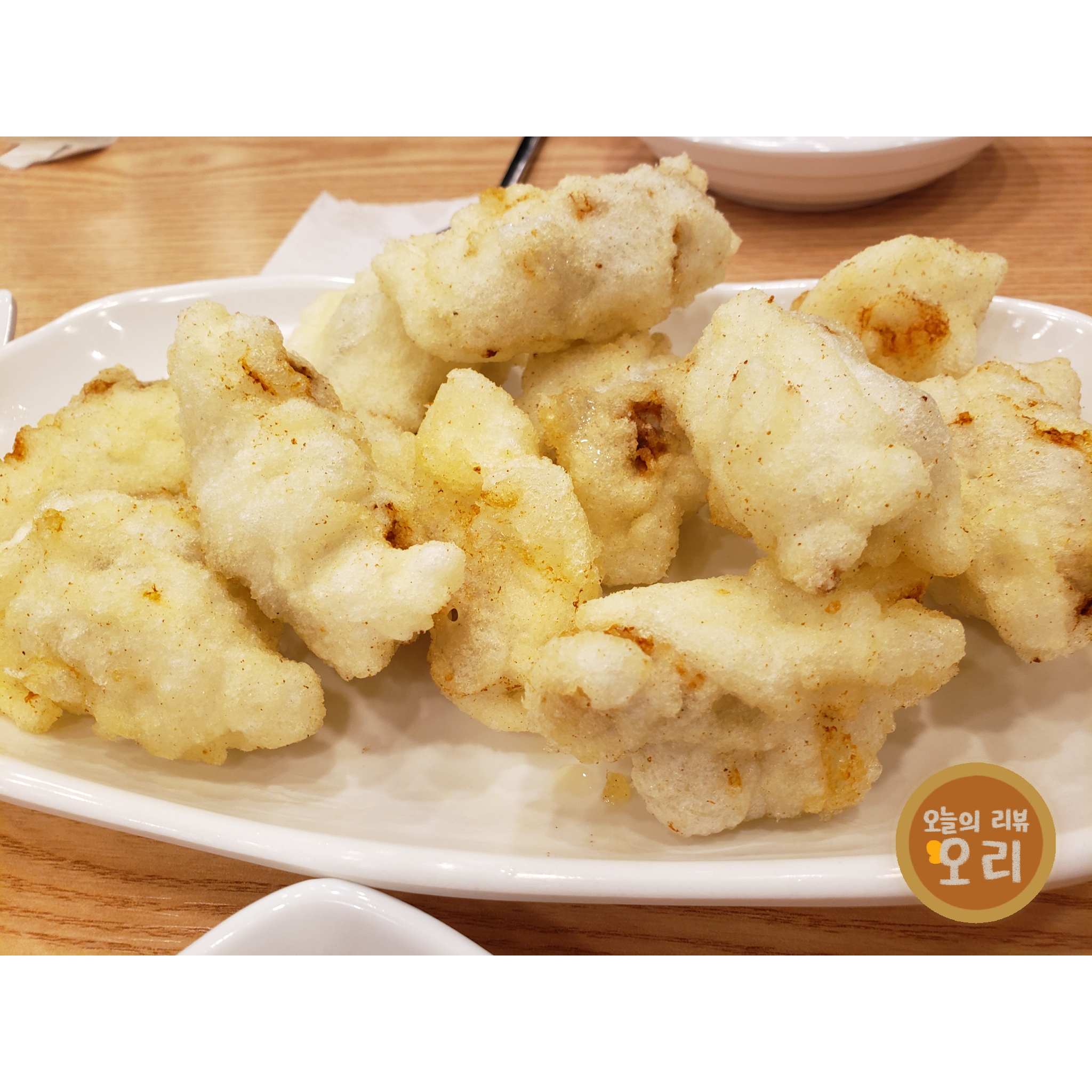 겉은 바삭하고 안은 촉촉하면서 쫀득해서 식감이 재밌었어요. 가장 작은 사이즈로 주문했지만 세 명이 먹기 정말 알차더라고요. 안의 고기도 실하고 냄새도 없어 좋았습니다. 같이 나온 소스는 약간 오미자즙 색깔이었어요. 맛은 일반 탕수육 소스와 비슷했지만 과일이나 야채가 들어있지 않아 깔끔하니 오히려 전 좋더라고요. 통조림 과일의 맛이 나는 소스를 별로 좋아하지 않아서 그런 것 같았어요.