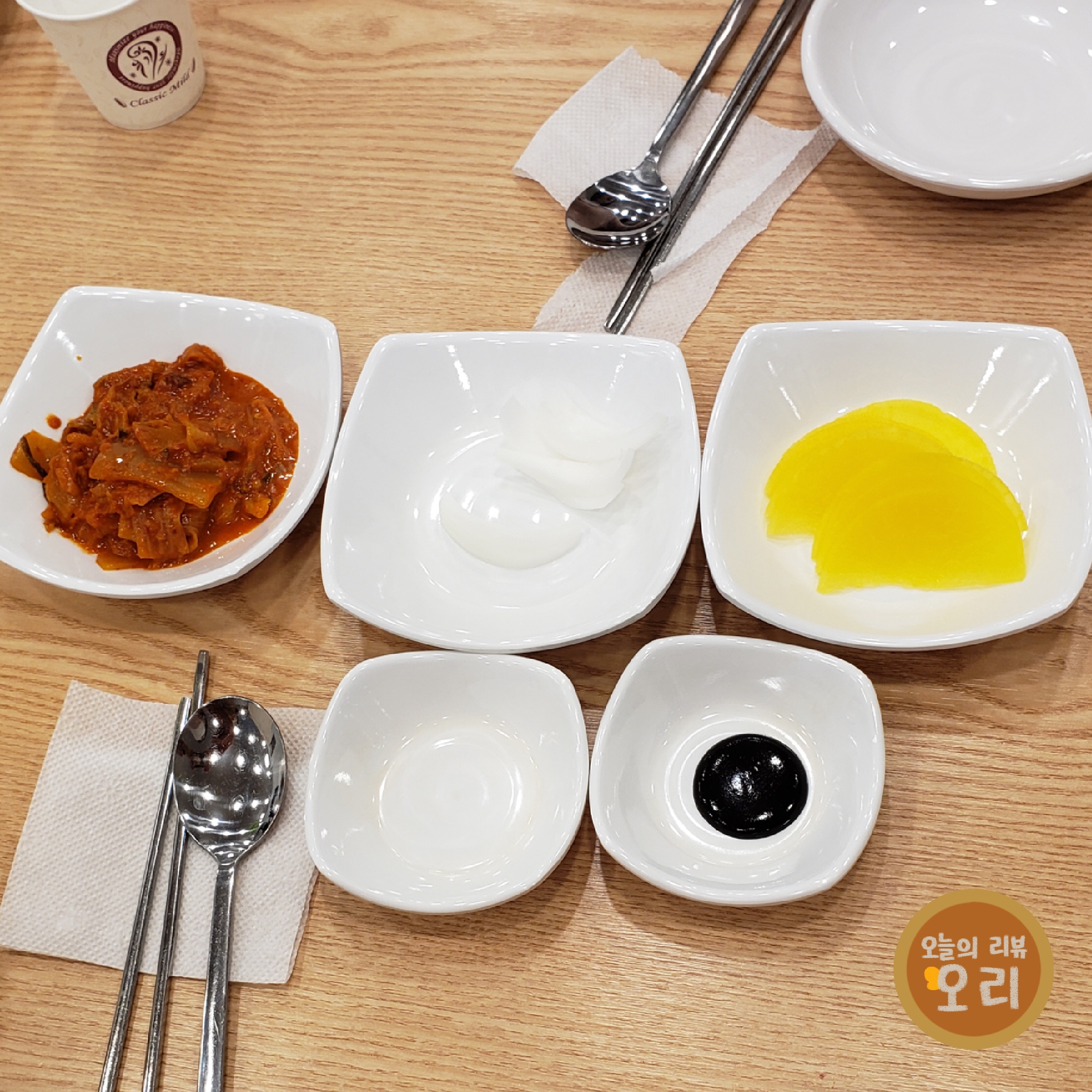밑반찬은 이렇게 세 종류고 저 중 볶음 김치가 정말 맛있더라고요. 약간 떡볶이 맛이 나는 김치랄까? 볶음 김치에서 떡볶이 맛이 나서 좀 놀랐지만 약간 매콤하고 달달하니 맛있었어요.